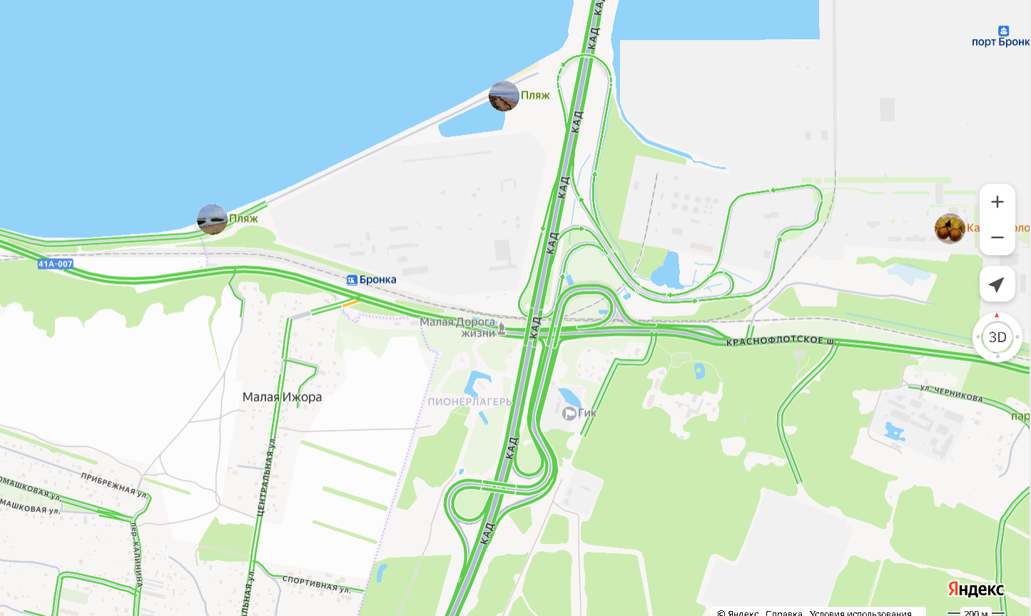 4 декабря движение по внешнему кольцу Кольцевой автодороги в районе Ломоносова будет сужено. На путепроводе через Краснофлотское шоссе для проезда останется только правая полоса.