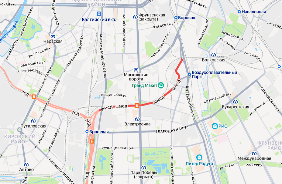 В период с 23:00 30 марта до 3:00 31 марта будет закрыт съезд с Витебского проспекта на Витебскую развязку (ШМСД) в направлении к ЗСД. Следующий этап, с 3:00 до 6:00 31 марта, затронет съезд с Широтной магистрали (ШМСД) на Витебский проспект в южном направлении.