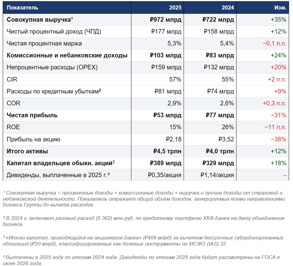 — 2025 год был для банков непростым. Высокая ключевая ставка, жесткая денежно-кредитная политика и усиление регулирования давили на маржу и прибыль сектора. В этих условиях Совкомбанк сохранил прибыльность и продолжил рост.