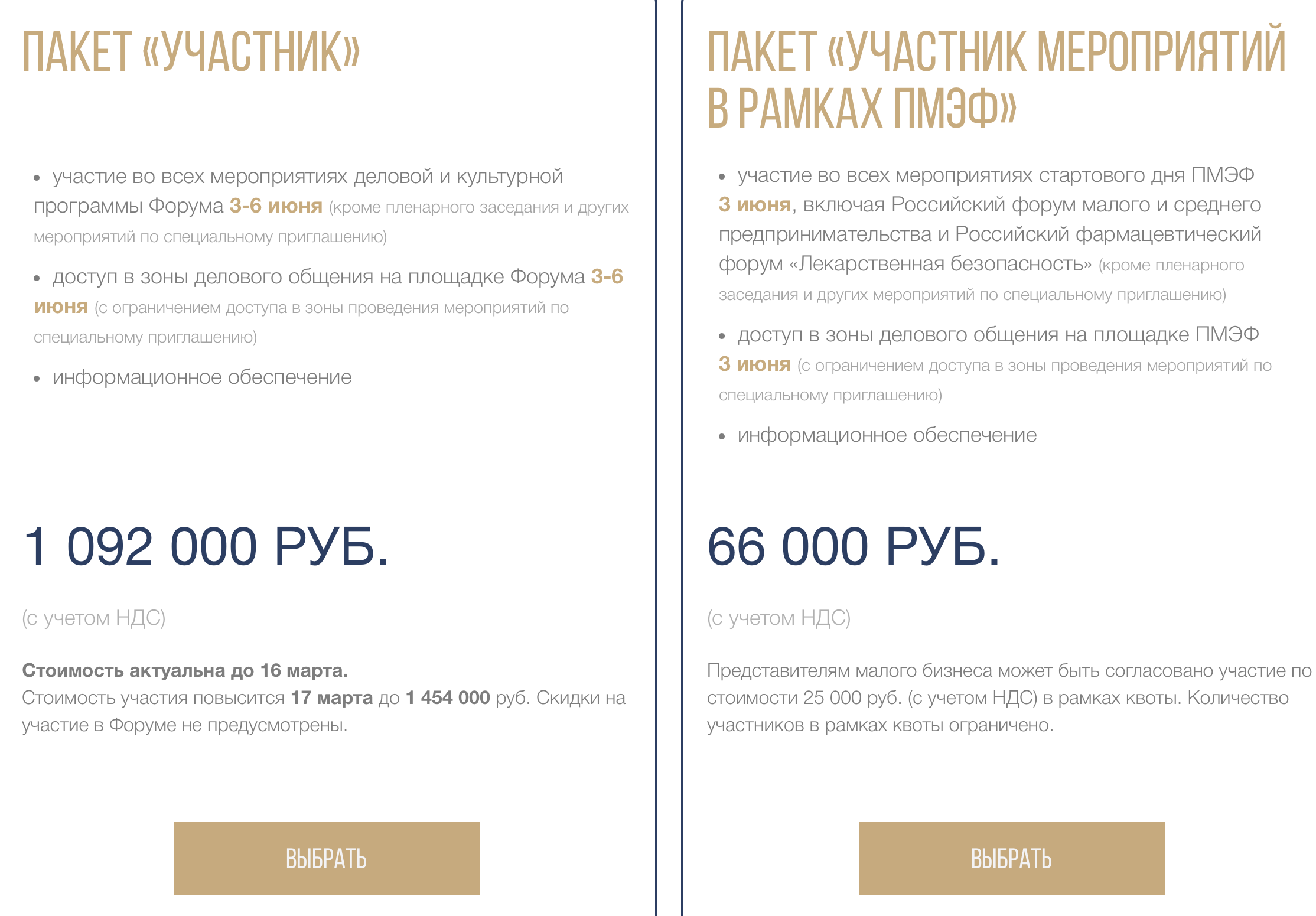 Для раннего бронирования доступен специальный тариф: пакет «Участник» можно приобрести за 1 092 000 рублей, но только до 16 марта 2026 года включительно. После этого срока стоимость повысится до 1 454 000 рублей. Дальнейшие скидки организаторы не предусмотрели.