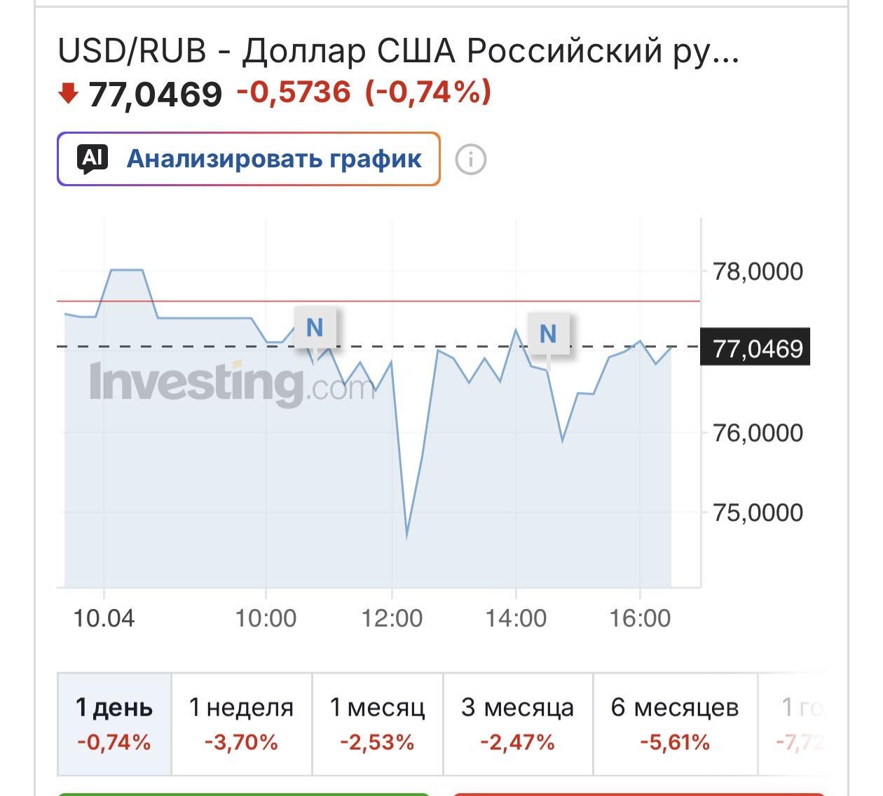 В публикации канала приведен следующий комментарий: «В этом месяце сборы бюджета от налога на добычу полезных ископаемых будут в районе 700-800 млрд рублей. Единый налоговый платеж у нас 28 апреля. И экспортеры будут массово менять валюту на рубли, — говорится в канале. — Избегая инвестиционных рекомендаций, лишь отметим, что если подловить этот момент, можно будет максимально выгодно купить доллары».