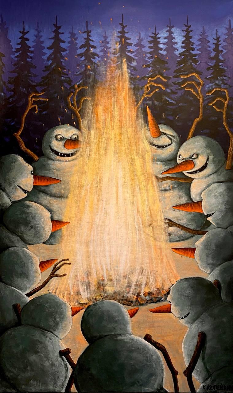 Галерея «Свиное Рыло» до 1 марта показывает юбилейную выставку Николая Копейкина. Здесь представлены работы художника разных лет, в том числе известные образы слонов Петербурга и снеговиков.