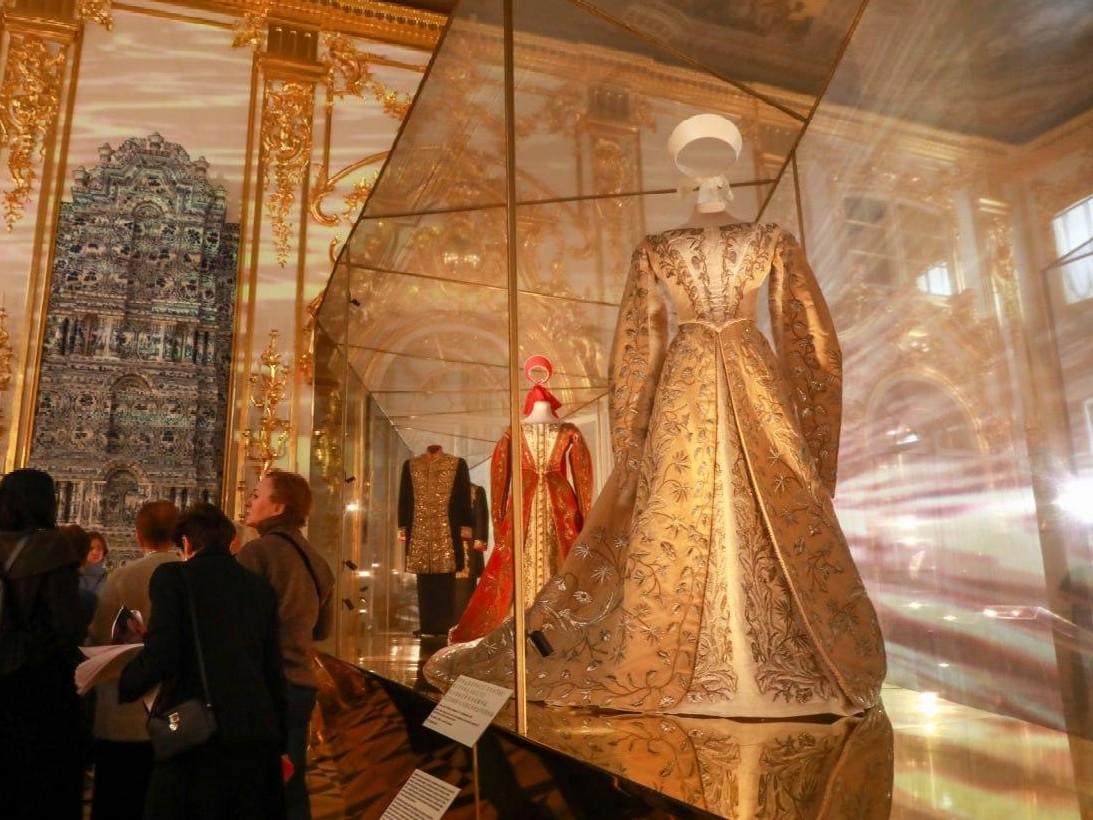 В Царском селе до 19 апреля работает выставка «Северное солнце», посвященная золотому шитью. Экспозиция включает великокняжеские платья и крестьянские платки XIX века из коллекции Каргопольского музея.