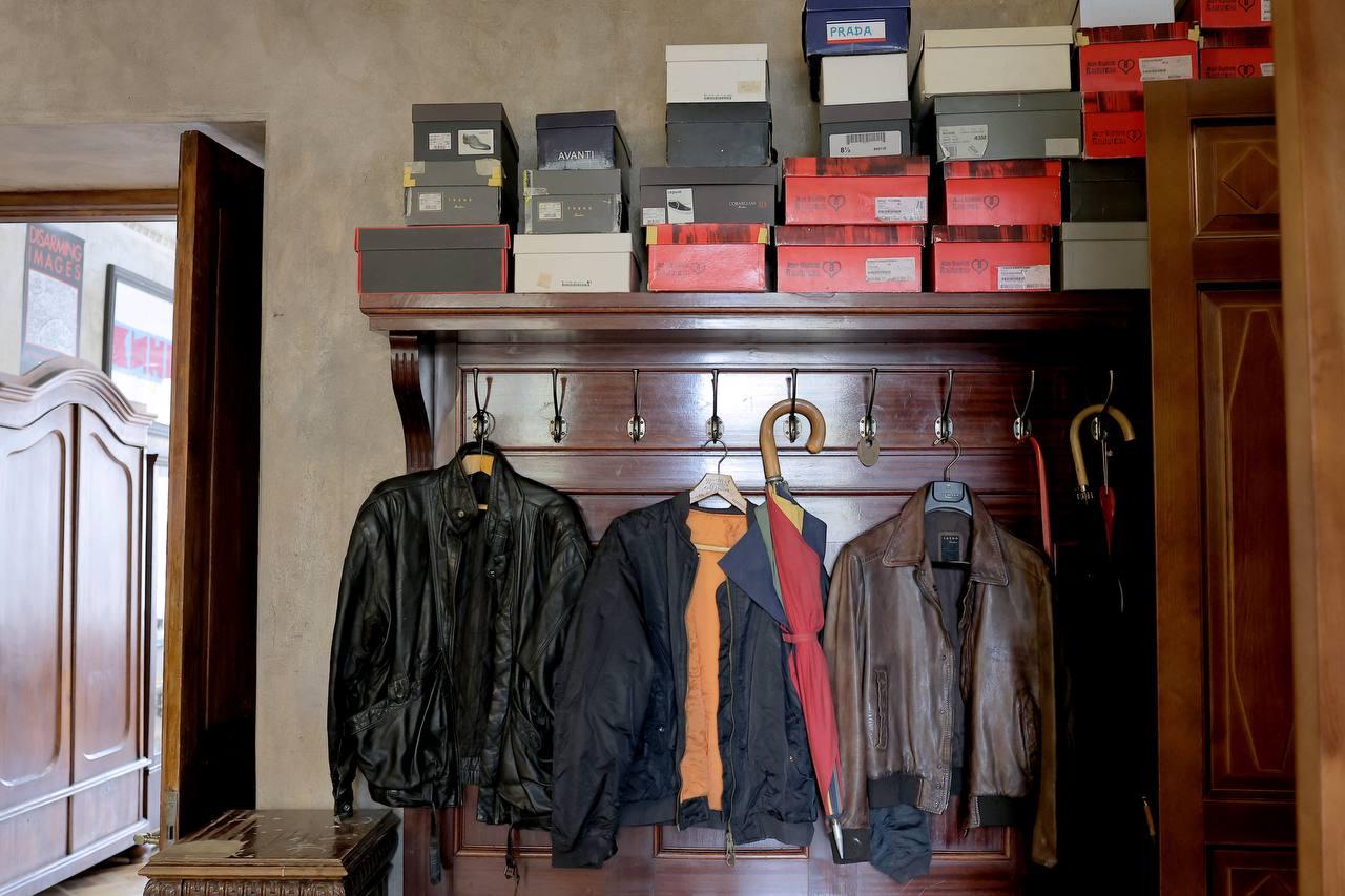 У входа в столовую на вешалке висит любимый бомбер Гурьянова, рядом лежат зонт и номерок из ресторана, который он когда-то случайно унёс. На полках стоят коробки с обувью. Всё выглядит так, будто хозяин ненадолго вышел, а его вещей, тщательно отобранных и качественных, меньше, чем у среднего модника.