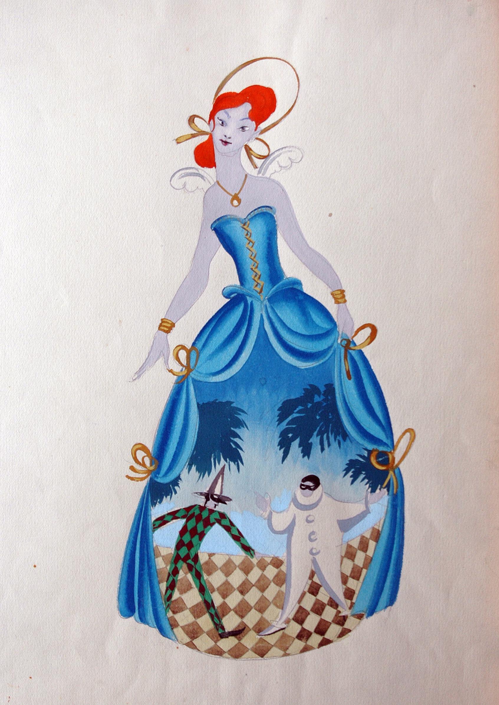 Эскиз костюма для персонажа Юлии Джули из спектакля «Тень», созданный Николаем Акимовым.