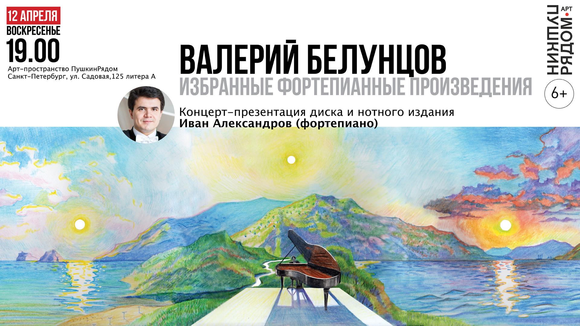 Презентация диска и нотного сборника «Избранные фортепианные произведения» Валерия Белунцова пройдёт 12 апреля в арт-пространстве «ПушкинРядом». Мероприятие начнётся в 19:00, оно рекомендовано для зрителей старше 6 лет.