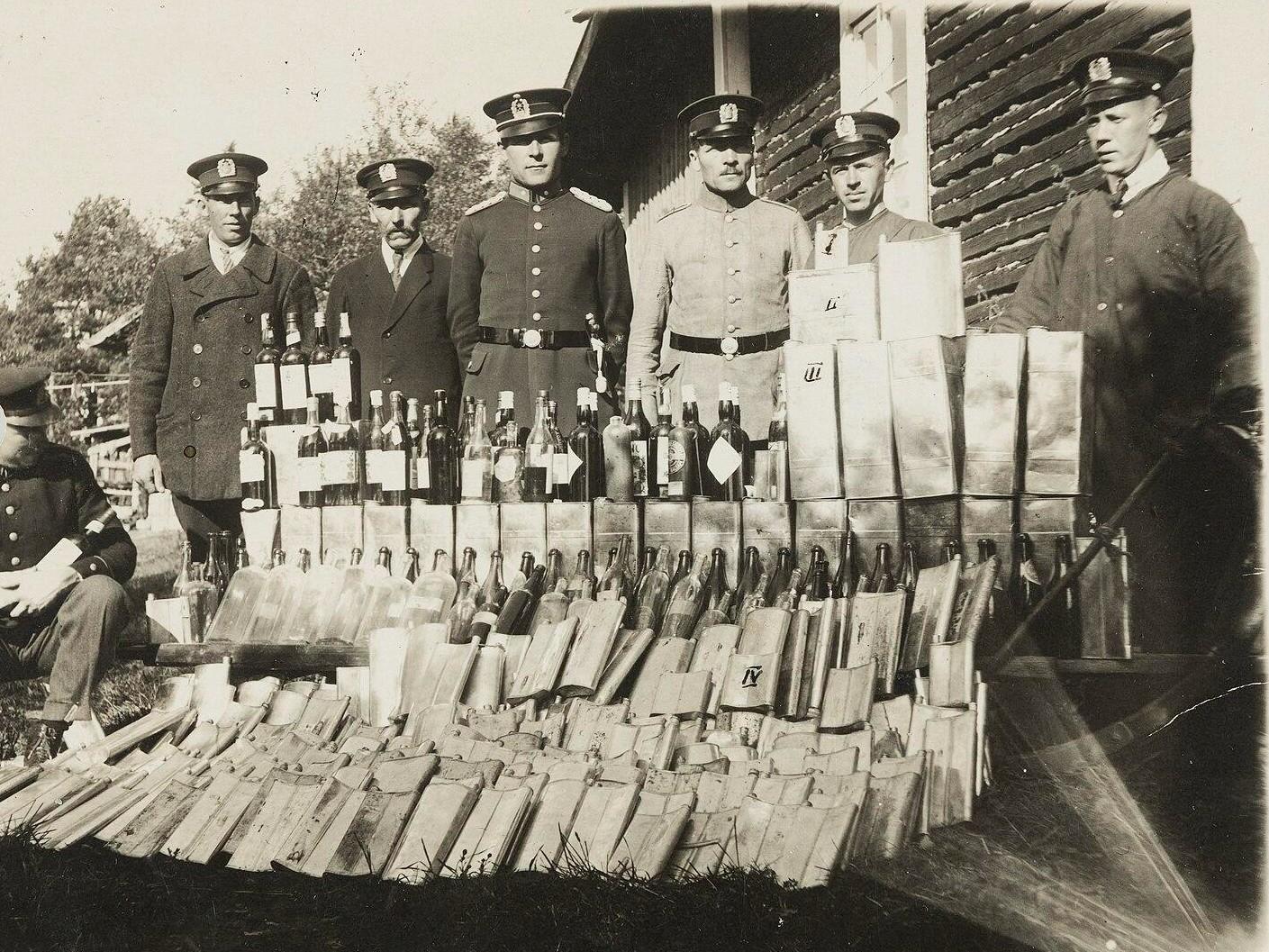 Алкоголь, изъятый у контрабандистов в годы действия «сухого закона».