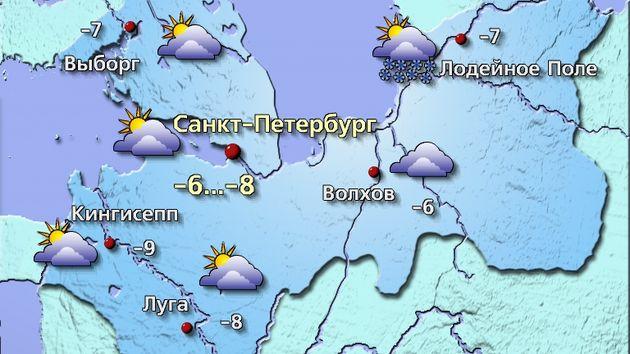 - В Санкт-Петербурге: -6…-8 °С.