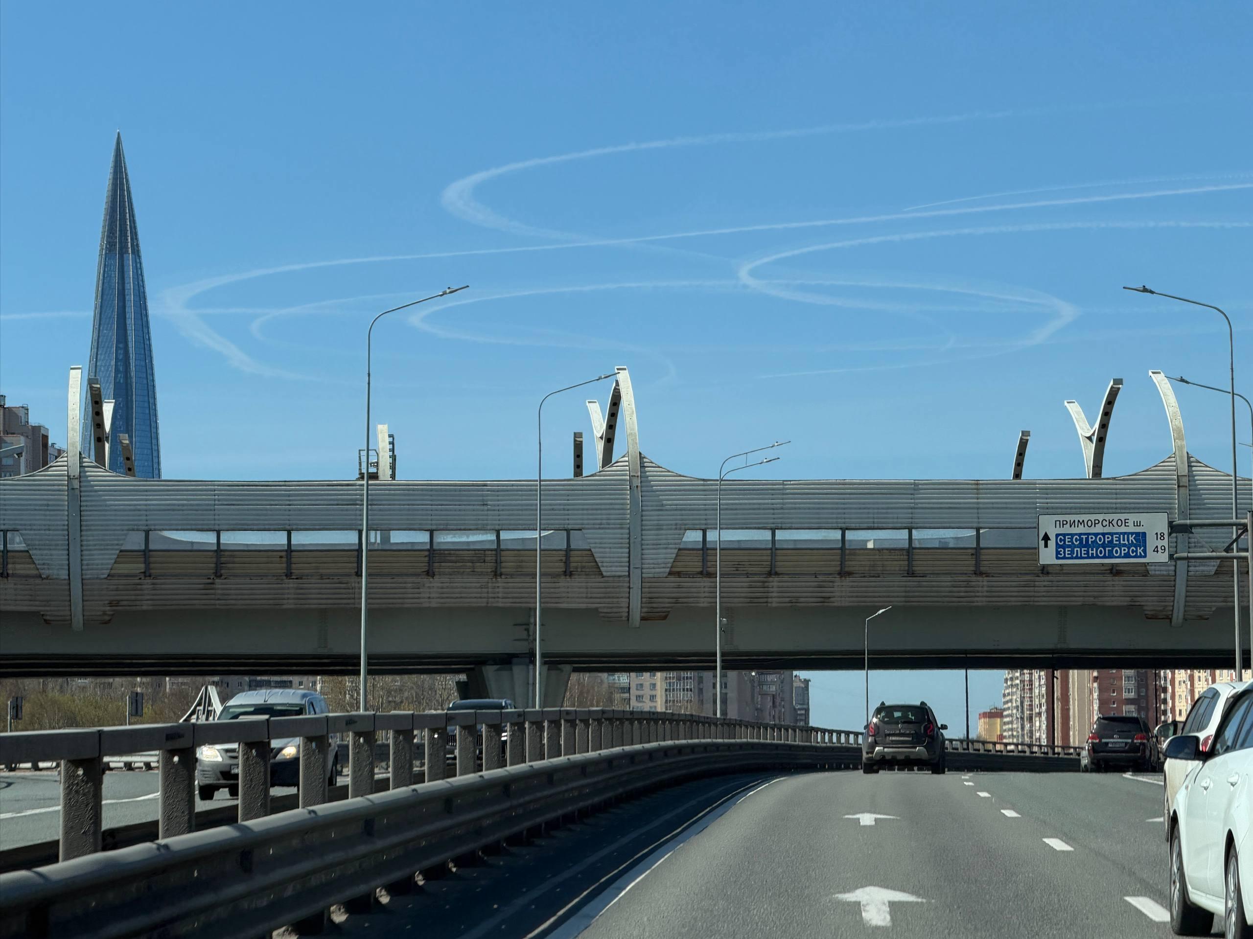 Петлеобразные следы в небе над Санкт-Петербургом