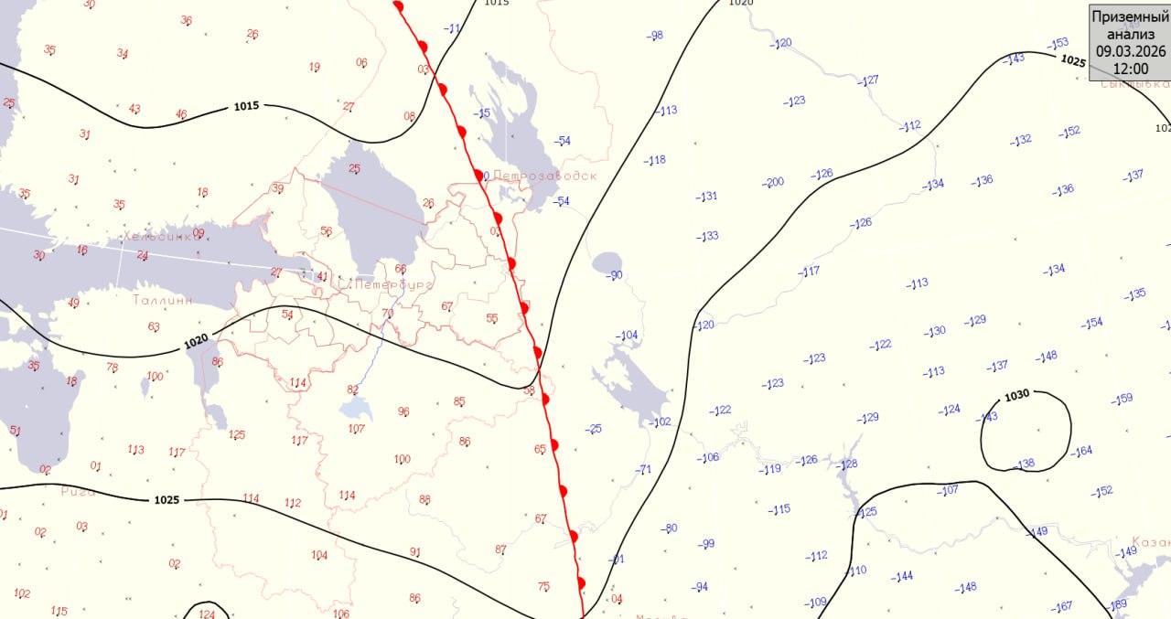 Морозный воздух 8 марта укрепился на территории Архангельской и Вологодской областей, но дальше Карелии и восточных районов Ленинградской области не распространился. В тот день на востоке Ленобласти дневные температуры составляли -4…-8 градусов, а на остальной части региона прогревались до +4…+7.