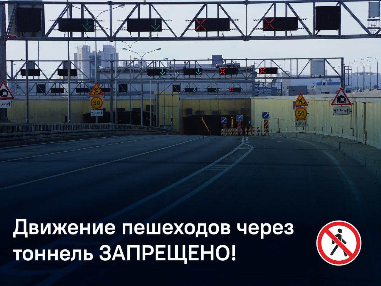 Речь идет об автодорожном тоннеле судопропускного сооружения С-1. Он является частью Кольцевой автодороги (КАД), где движение пешеходов строго запрещено правилами дорожного движения.