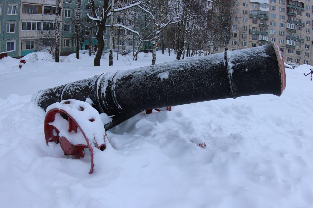 «Старинный артиллерийский ствол, по воспоминаниям старожилов района, появился здесь после начала строительства дамбы в 80-х. Орудие нашли на дне проживающие у метро Просвещения строители защитного сооружения и решили установить у себя во дворе», — пояснили в ГАТИ.