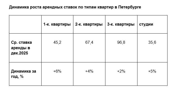 Ожидается, что устойчивый рост цен возобновится с началом высокого сезона, хотя в годовом выражении он может быть менее заметен из-за оживления на рынке новостроек и вторичного жилья в связи с улучшением ипотечных условий. В январе 2026 года средняя доходность от сдачи однокомнатной квартиры, купленной на вторичном рынке Петербурга, составила 5,2%, а в Ленинградской области — 7,0%.