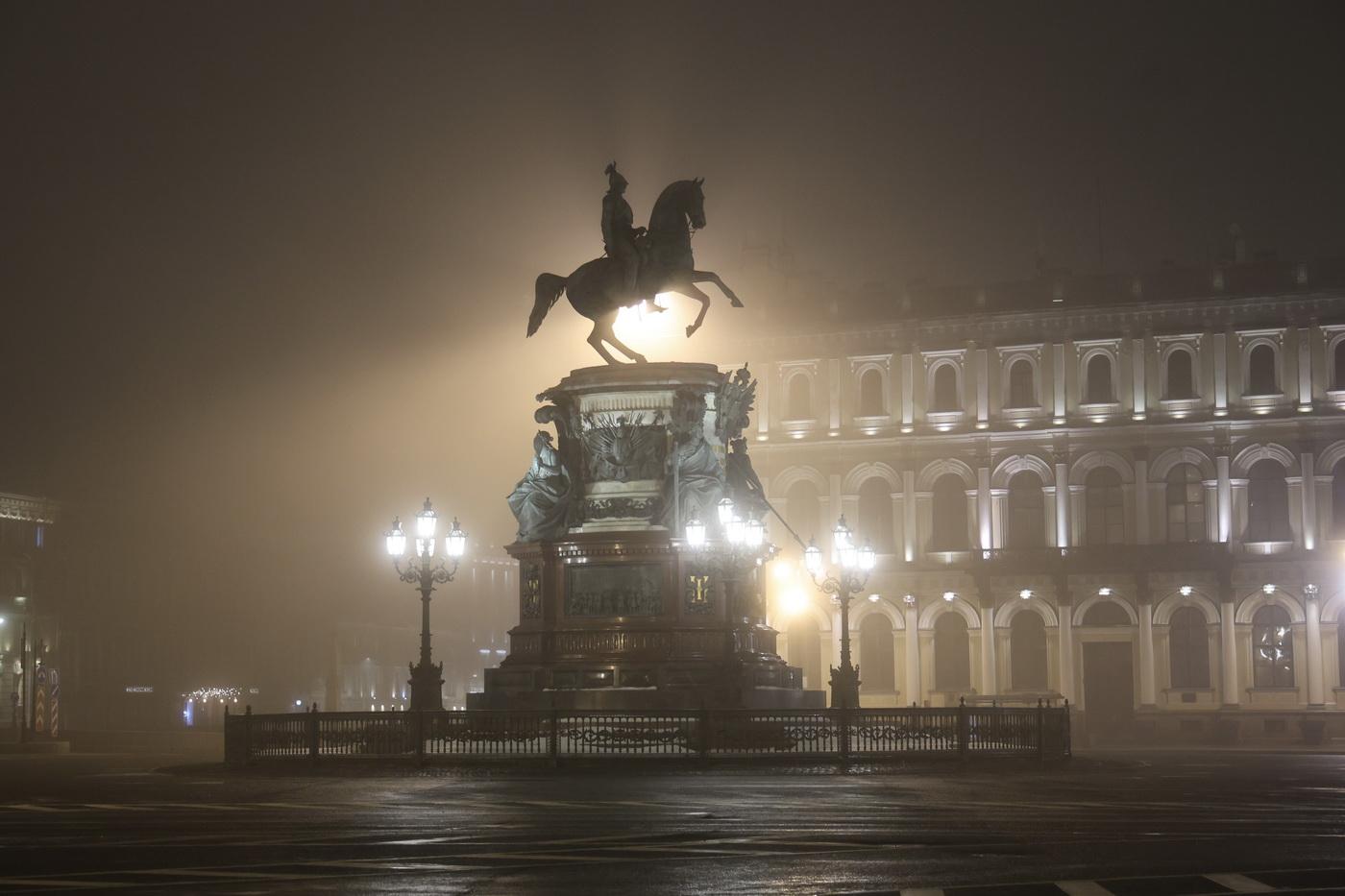 Новая рабочая неделя в Санкт-Петербурге началась с густого тумана, который накрыл город. Ночью 10 марта фотограф издания «Фонтанка» провел съемку улиц, чтобы запечатлеть атмосферные виды.
