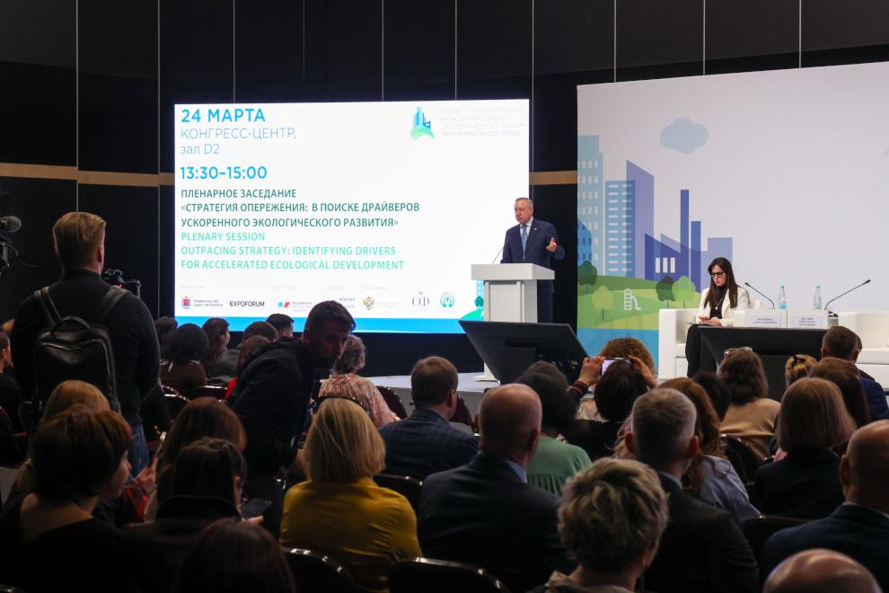 На международном форуме «Экология большого города», открывшемся 24 марта в «Экспофоруме», губернатор Александр Беглов представил планы по формированию «зелёного бюджета».
