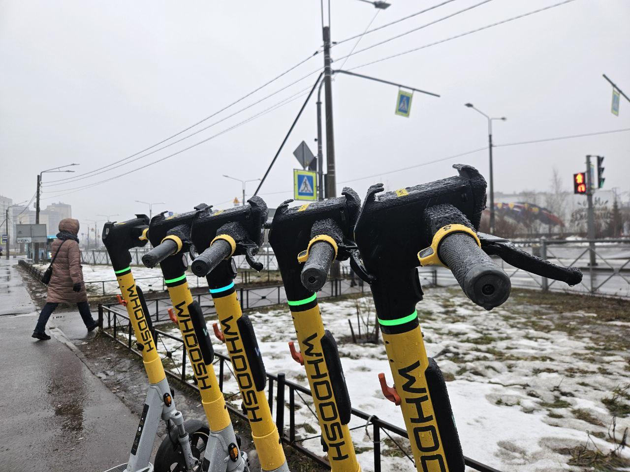 Электросамокаты на парковке в Санкт-Петербурге в межсезонный период
