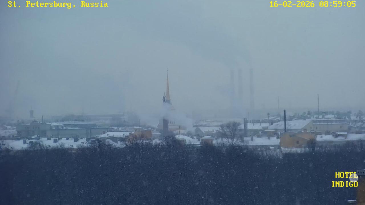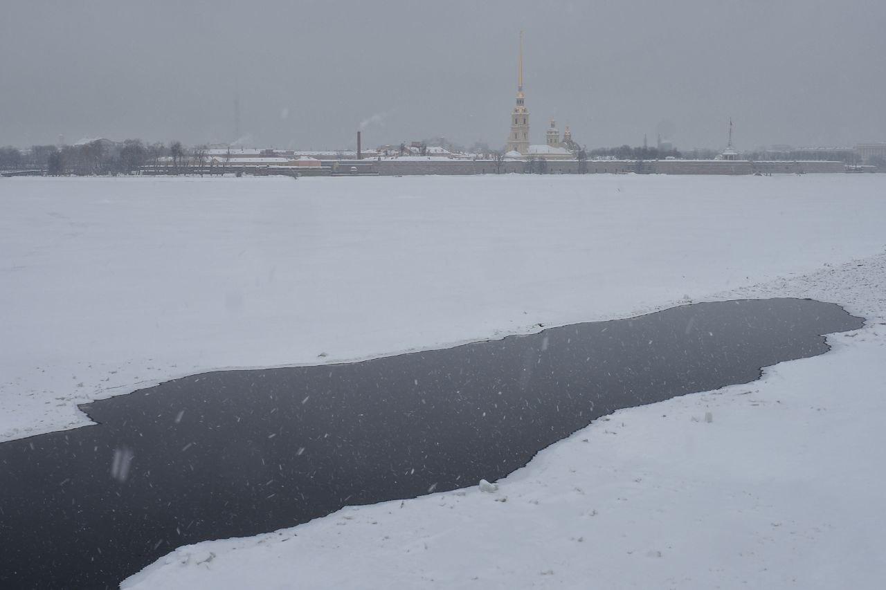 В Санкт-Петербурге 16 февраля, несмотря на влияние холодного антициклона, наблюдается снегопад. Температура воздуха опустилась до −7…−9 градусов.