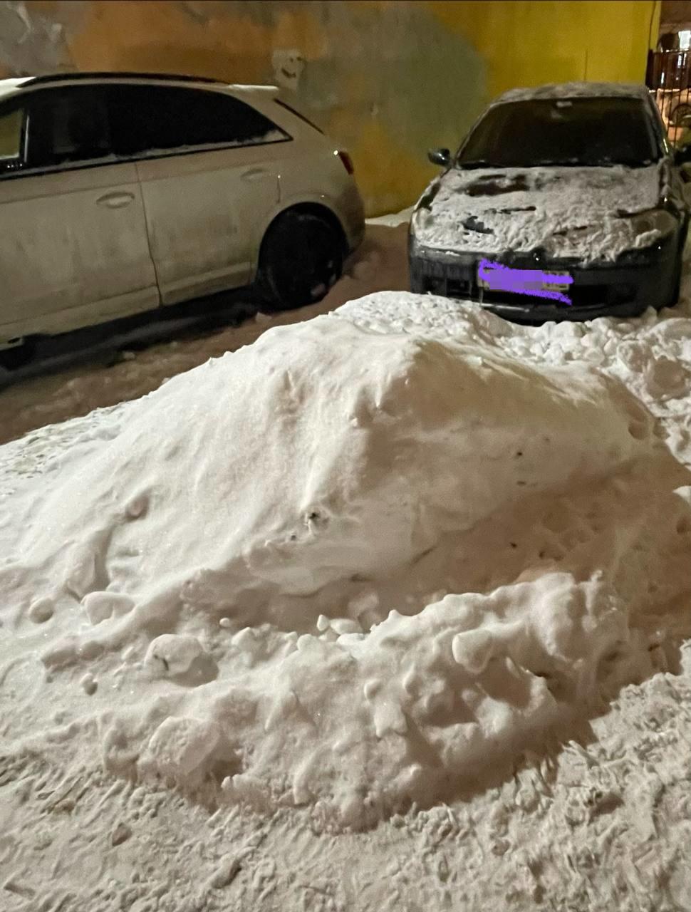 На улице Красного Курсанта, 51, сугроб заблокировал автомобиль местного жителя, из-за чего он не смог выехать на работу.
