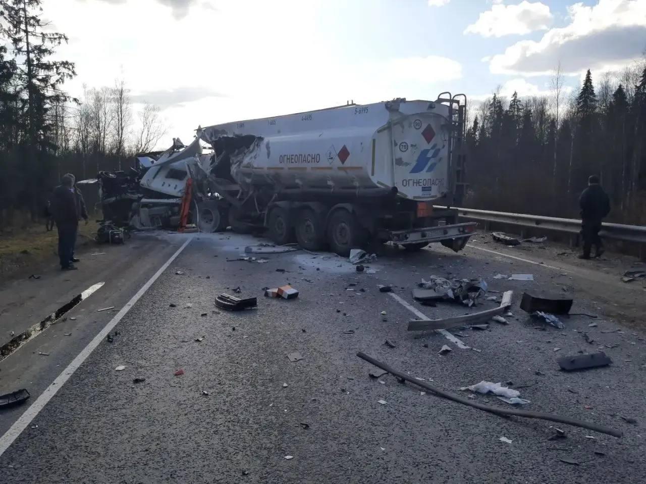 - бензовоз получил критические повреждения: кабину «сложило», заднюю часть искорежило;