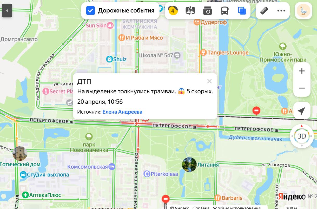 Серьёзное столкновение двух трамваев произошло 20 апреля на Петергофском шоссе напротив жилого комплекса «Балтийская жемчужина».