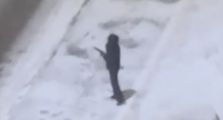 Местные жители, наблюдавшие из окон, увидели, как подозрительный человек ходил по улице, иногда направляя «ствол» на невидимые цели. Это зрелище вызвало беспокойство у соседей.