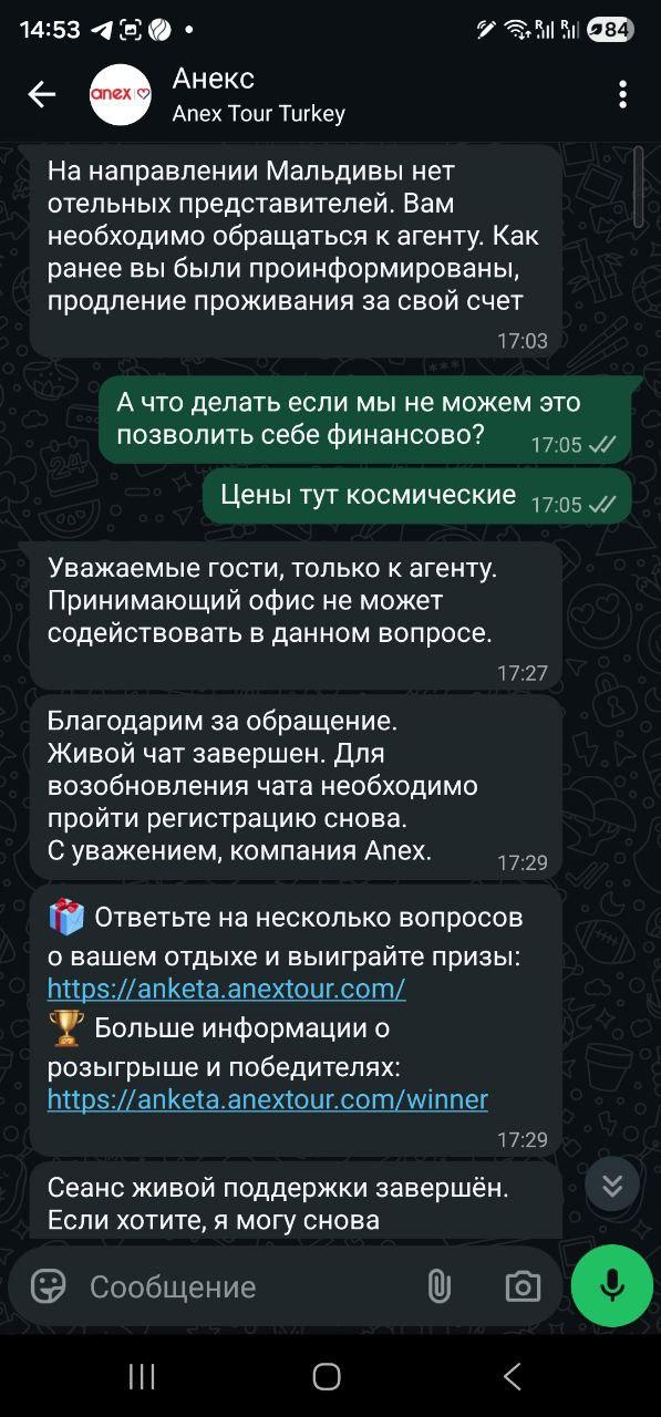 Участники созданного чата также жалуются на насмешки в социальных сетях. «Почему-то многие считают: если человек на Мальдивах — значит, он супербогатый и выкрутится. Даже если он копил на эту поездку всю жизнь. Райский отдых превратился в кромешный ад. Мы купили путевку у Anex. Туроператор помог ровно одним: заселил на одну ночь в гостиницу с завтраками. А наутро заявил: ответственность снята, дальше вы сами», — написала одна из путешественниц.