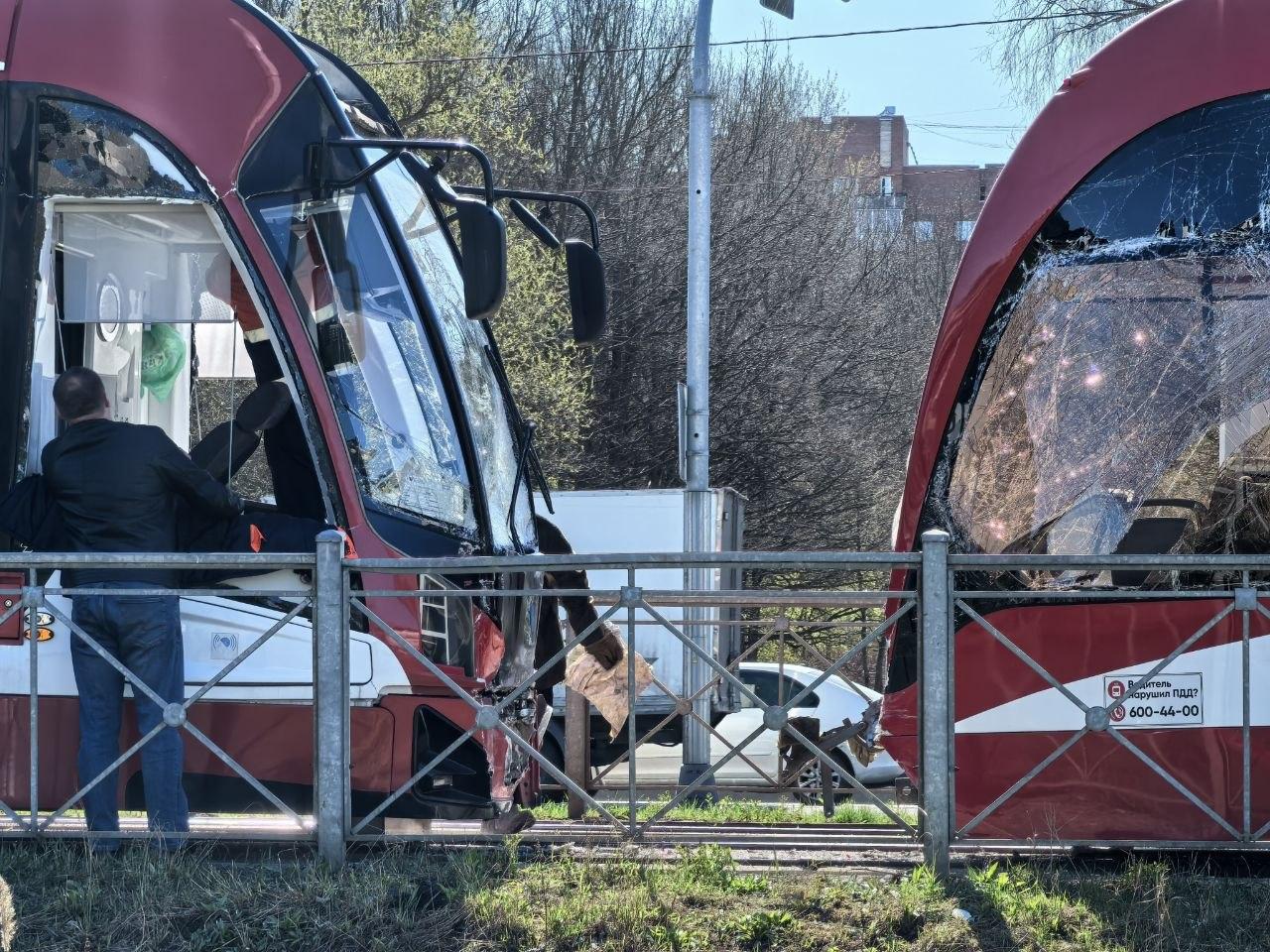 Столкновение трамваев на Петергофском шоссе попало на видео