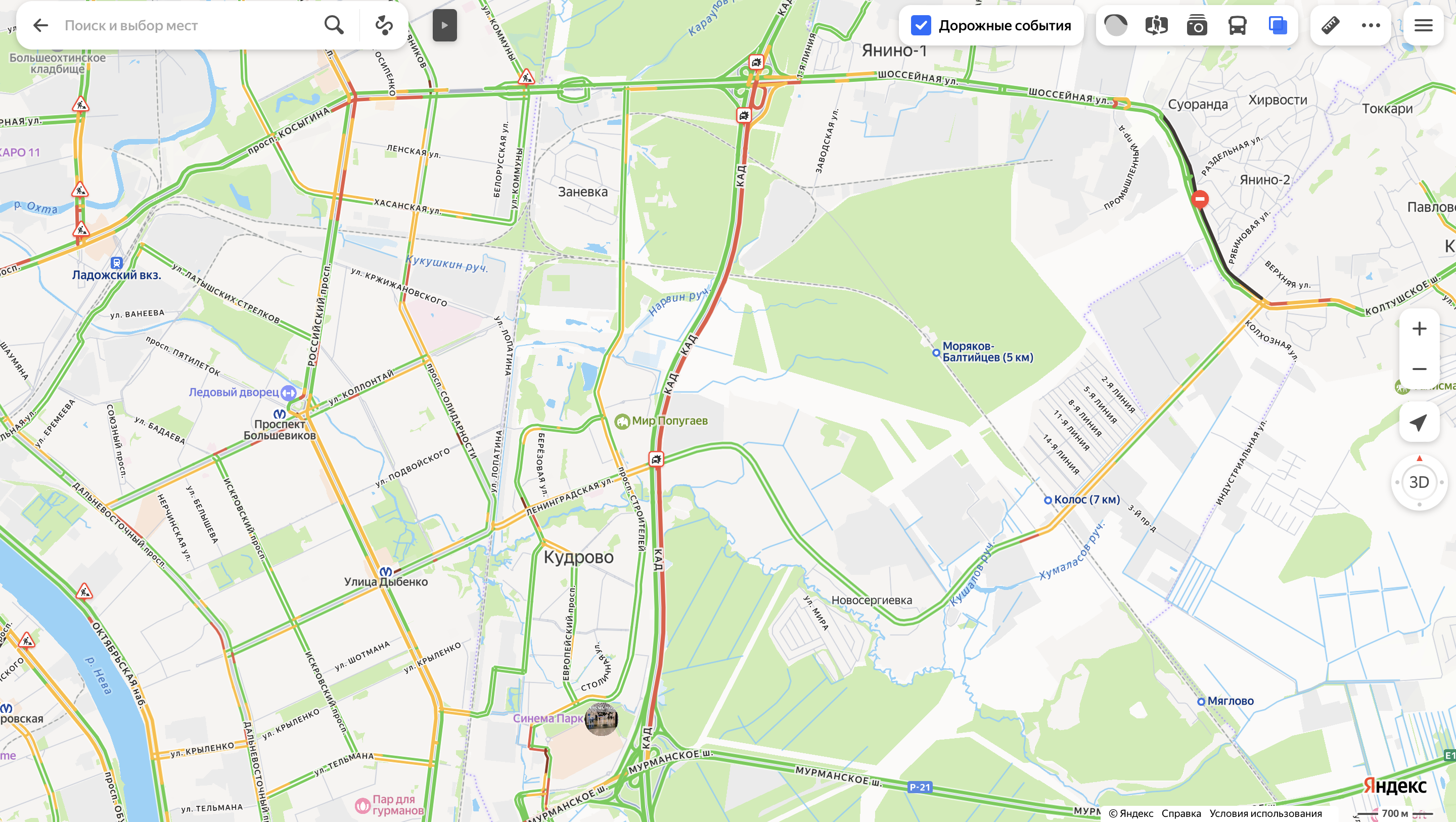 Согласно данным сервиса «Яндекс. Карты», к 11:00 часам образовалась шестикилометровая пробка. Она растянулась от развязки в районе Янино-1 до Мурманского шоссе.