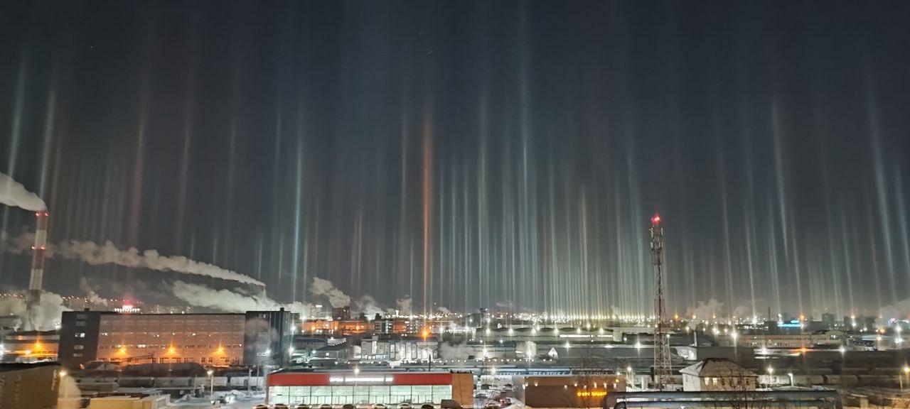В ночь на 29 января из-за антициклона в Петербурге и Ленинградской области наблюдали редкие атмосферные явления — северное сияние и световые столбы.