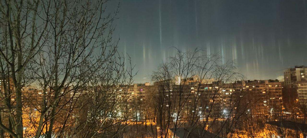 Ранее, примерно в три часа ночи, у торгового комплекса «Мега Парнас» был снят «невероятно яркий световой лес». Телеграм-канал «АстроФотоБолото» описал это так: «Облака на глазах опускались ледяными чешуйками на все вокруг. Буквально каждый источник света отражался в них, светило все, фонари, фары, вывески и рекламные экраны».