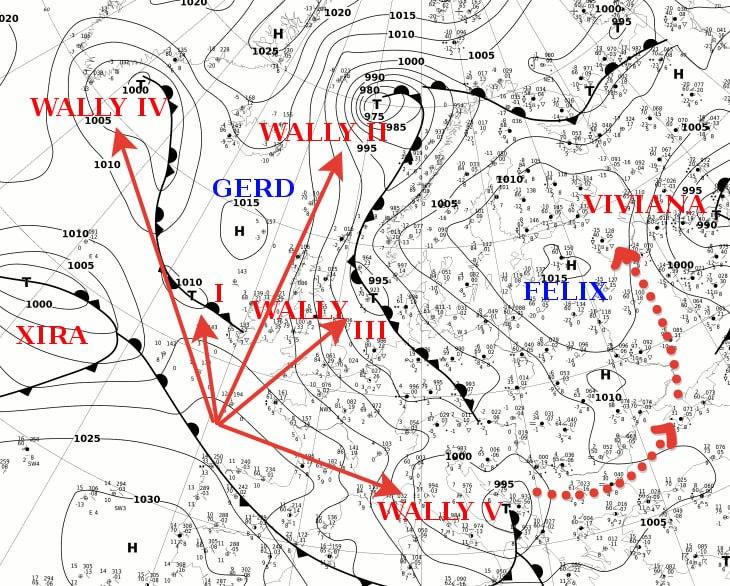 17 февраля на картах погоды над северной Атлантикой немецкие метеорологи обозначили пять различных циклонов одинаковым именем.