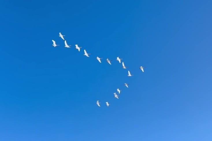 Более десятка лебедей-кликунов были замечены в небе над Выборгским районом Ленинградской области. Биолог Павел Глазков объяснил, что в последнее десятилетие эти птицы всё чаще зимуют в регионе.