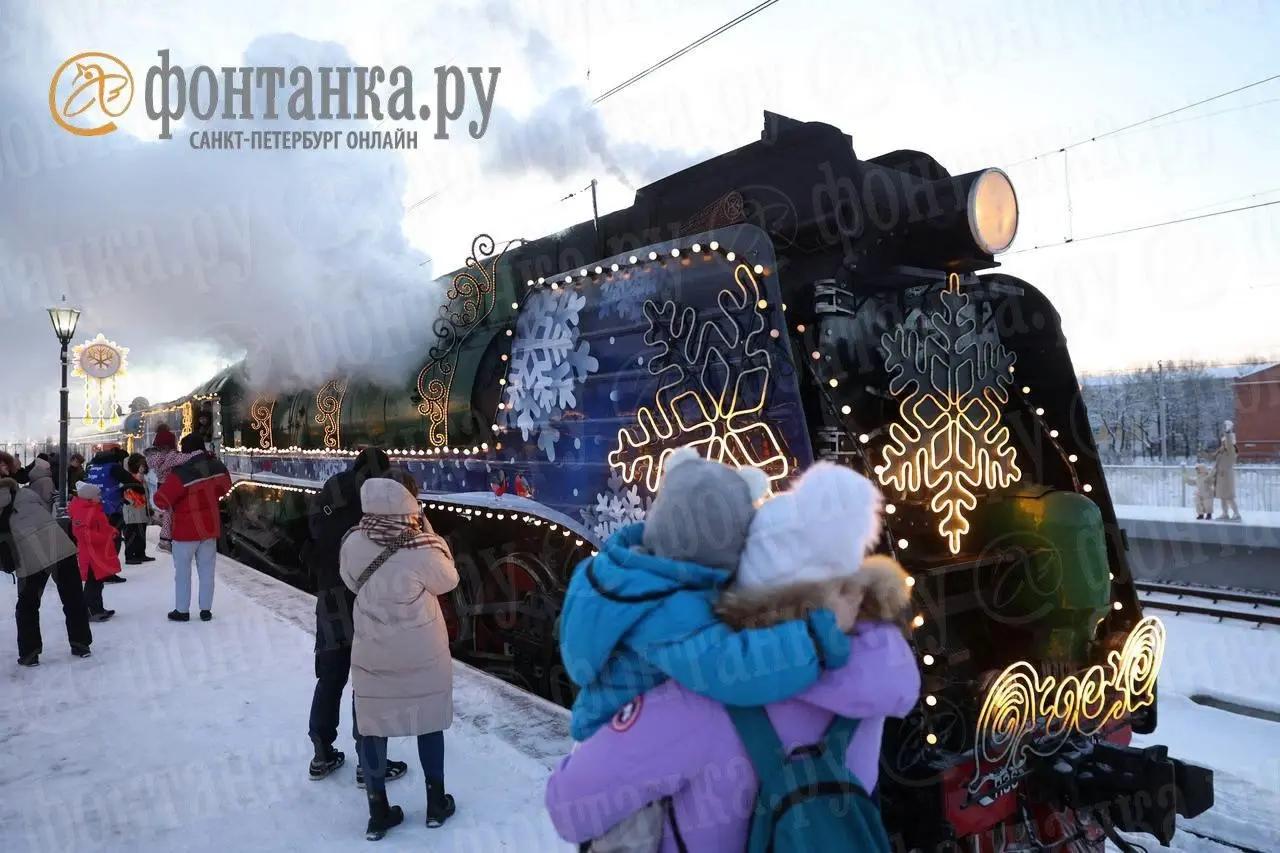 Поезд Деда Мороза начнет свое путешествие по Октябрьской магистрали 4 января 2026 года. В Санкт-Петербурге он сделает остановку на станции Новый Петергоф, где будет принимать гостей 6 и 7 января.