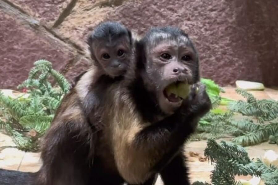 Четвертого детеныша у пары обезьян по кличкам Рикардо и Вета зафиксировали 17 января. Информацию о пополнении в семействе бурых черноголовых капуцинов опубликовали 18 февраля в официальном Telegram-канале зоосада.