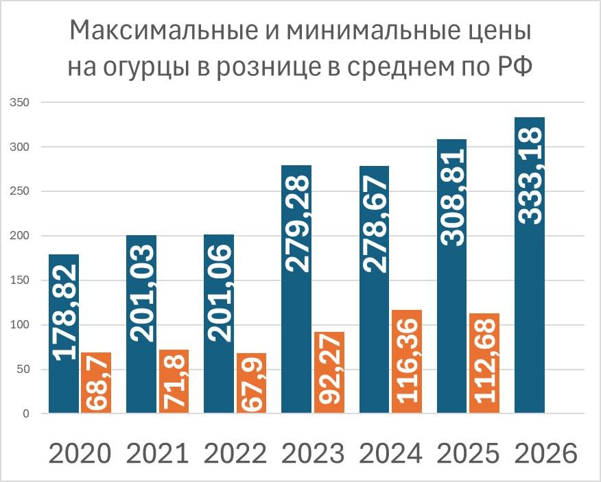 Цены на огурцы в Петербурге зимой 2026 года достигли 333 рублей за килограмм. Основными причинами стали аномально тёмная зима и конкуренция с дешёвыми импортными помидорами.