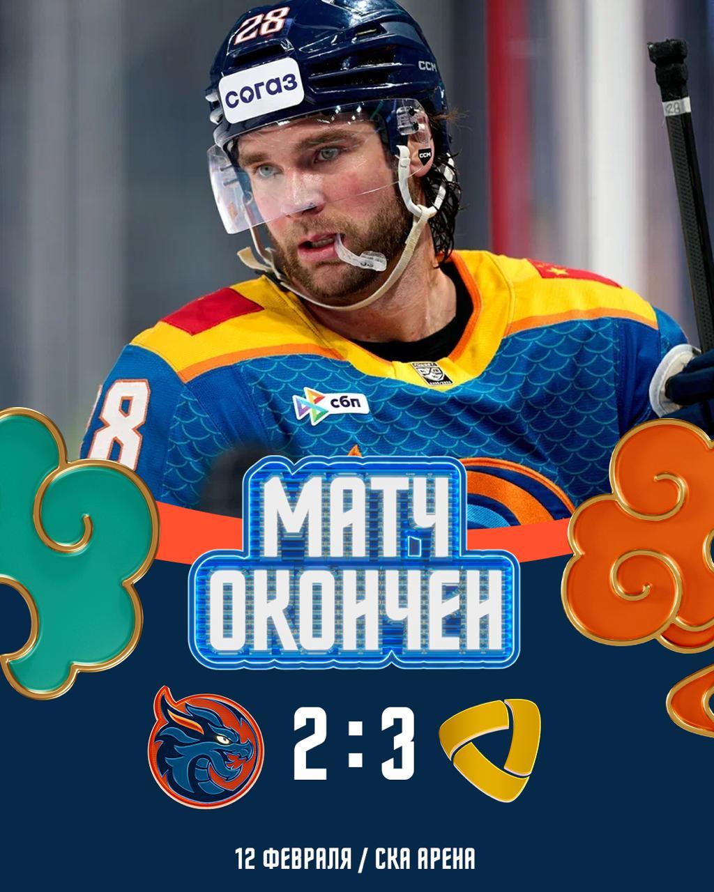 12 февраля на «СКА Арене» в Санкт-Петербурге «Шанхайские Драконы» потерпели четвёртое поражение подряд, уступив череповецкой «Северстали» со счётом 2:3.