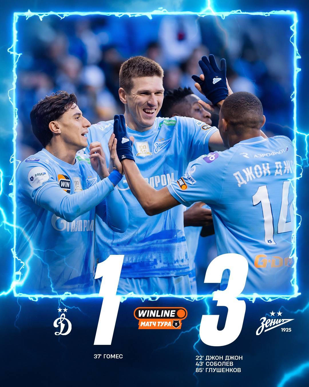 Благодаря этой победе «Зенит» набрал 48 очков и продолжает борьбу за чемпионство. «Динамо», прервав серию из трех побед подряд, с 30 очками остается в середине турнирной таблицы.